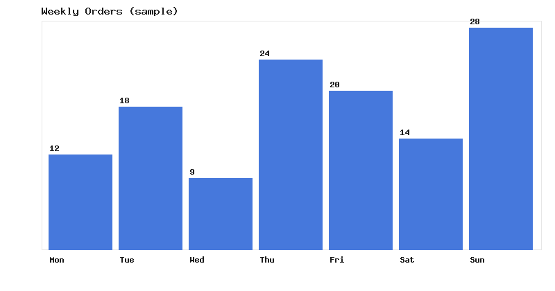 imagestring($image, 5, $padL, 8, 'Weekly Orders (sample)', $textColor);